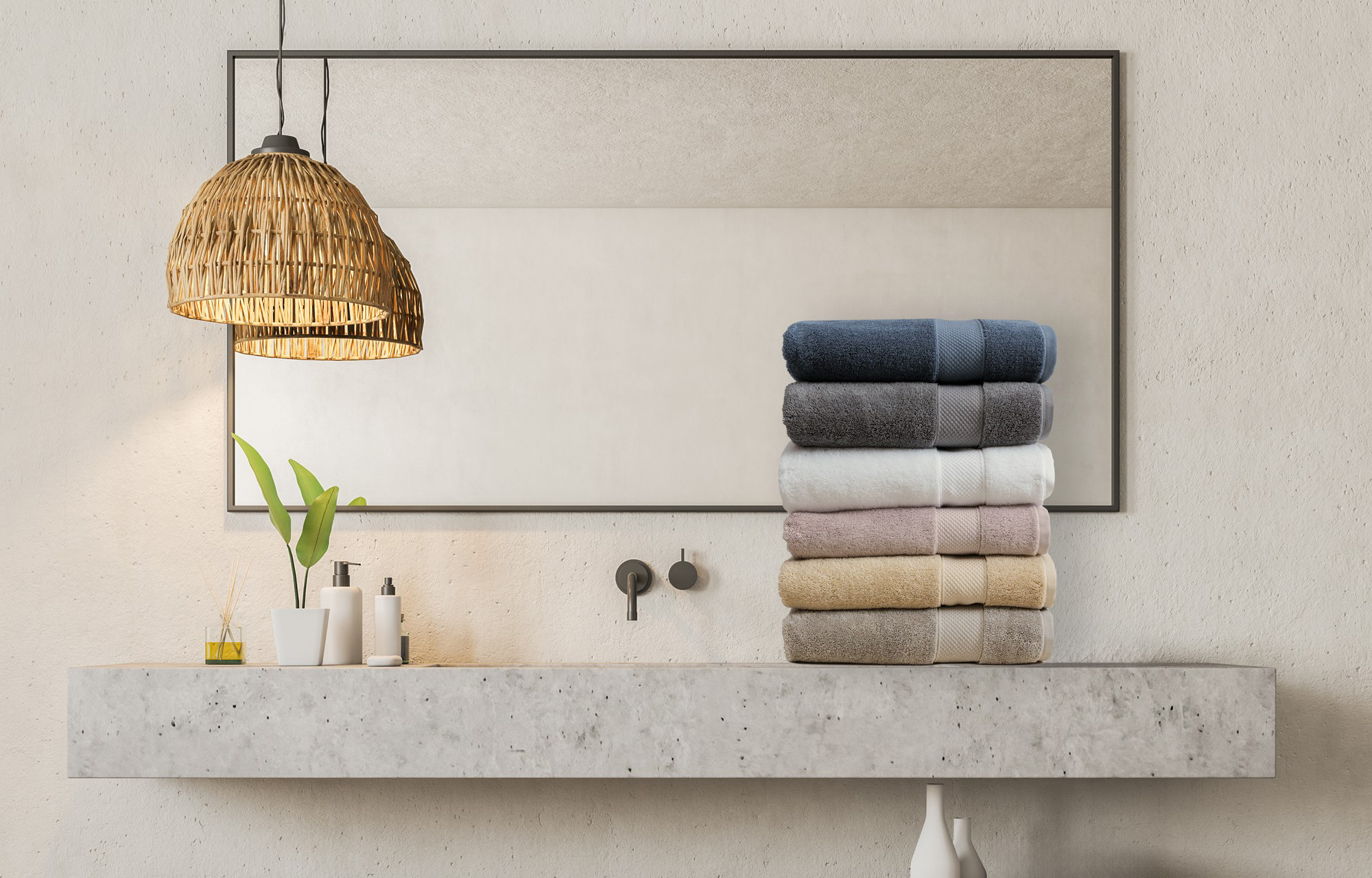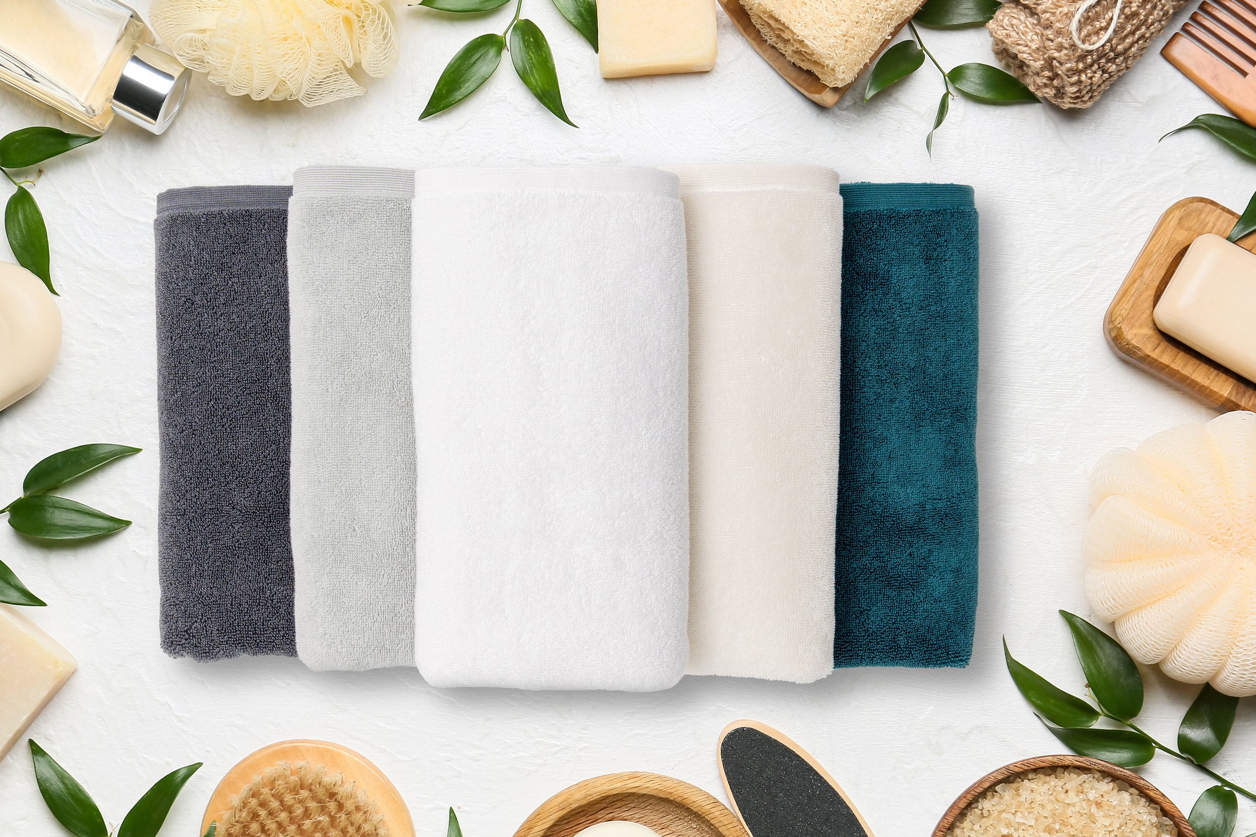 - Fotografowaliśmy sety tekstylne ręczników, ukazując je w różnych układach np. najmniejszego do największego lub wszystkie warianty kolorystyczne w danej wielkości.