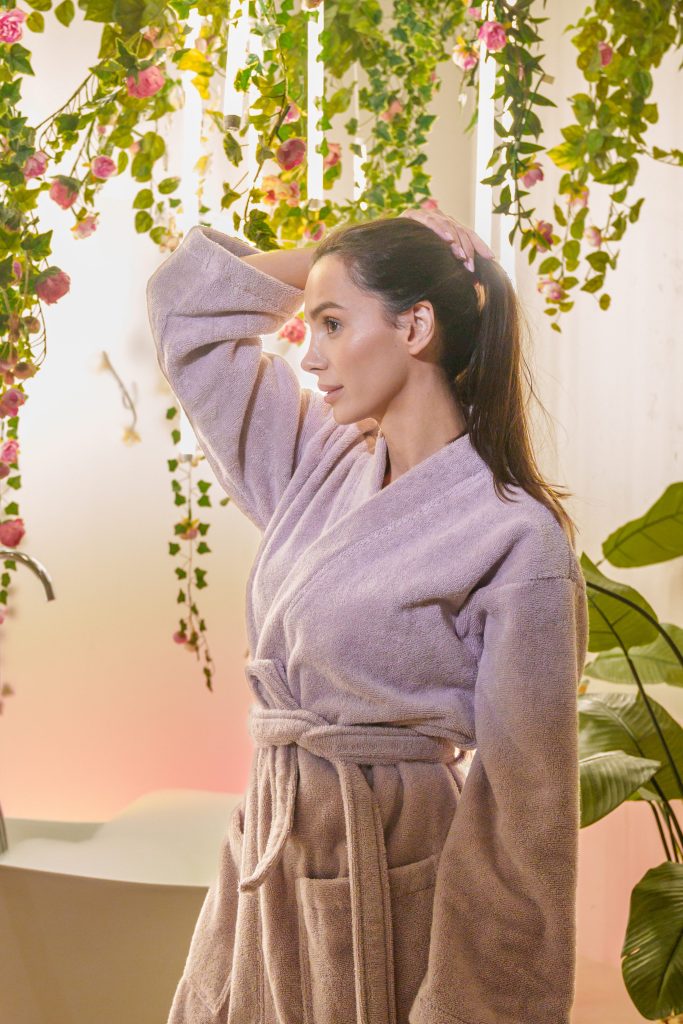 - Produkty prezentowane były przez profesjonalną modelkę. Dzięki czemu w subtelny sposób udało się podkreślić komfort i elegancję użytkowania tekstyliów z bawełny egipskiej.